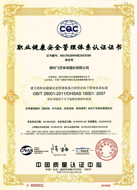 職業健康安全管理體系認證證書