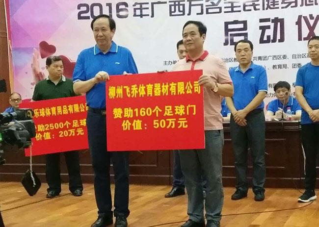 有愛才有家,柳州飛喬體育是個有愛心的大家庭。在2016年廣西萬名全民健身志愿者服務百縣千鄉活動中,我們柳州飛喬體育贊助價值50萬元的足球門160個,和在象州縣2016年“我愛象州全民健身”百萬群眾健步走活動,贈送價值9000元的健身單車16輛。關愛全民健康是我們飛喬體育的企業文化之一,我們飛喬人也希望更多人能擁有健康的身體。
