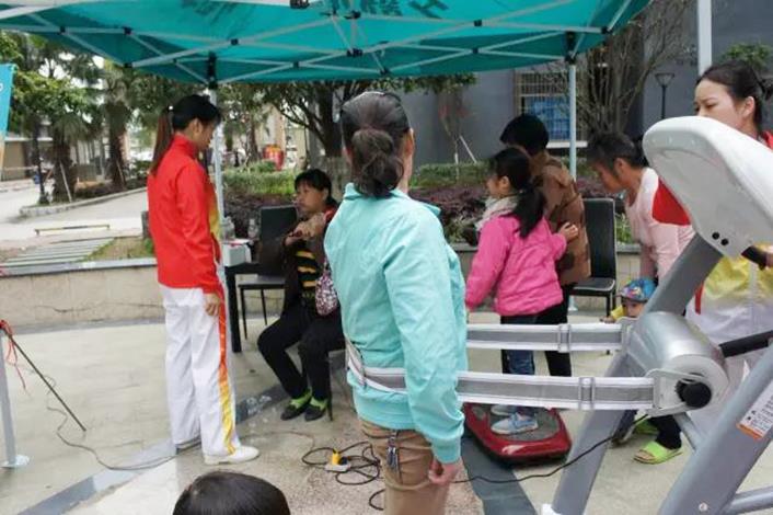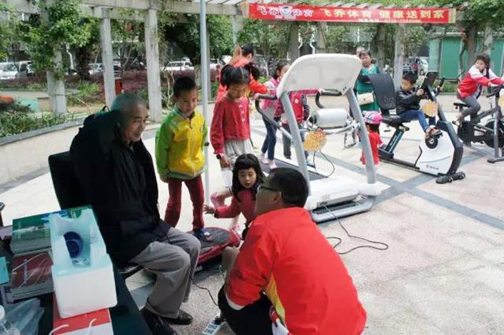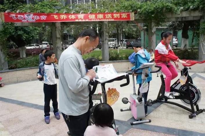 2017年4月22日,飛喬體育器材有限公司“飛喬體育 健康送到家”金碧苑小區行體驗活動正式啟動。當天,飛喬向金碧苑體驗用戶提供了一臺跑步機、一輛動感單車、一臺甩脂機,兩輛立式單車、兩輛自行車,多臺按摩器等運動器材供居民體驗使用。