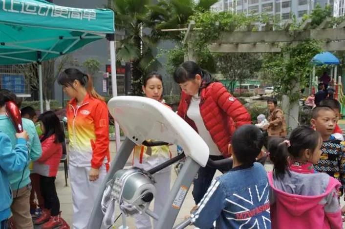 活動現場,居民們熱情參與到此次活動中來,孩子們看到這樣既能鍛煉身體又有趣的“大型玩具”都顯得異常興奮。對健身器材愛不釋手,場面一時活躍爆棚,局面一度差點控制不住。飛喬人認真向居民們指導講解健身器材的使用方式,居民們仔細聆聽并積極體驗,現場分外愉悅和諧。