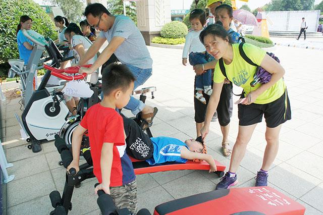活動當(dāng)天,飛喬體育提供跑步機(jī)、動感單車、腹肌板等10余款健身器材供碧桂園的游園客戶體驗使用。體驗活動具有互動性、娛樂性等特點,游戲一開始,就吸引了大批大、小朋友的熱烈關(guān)注。