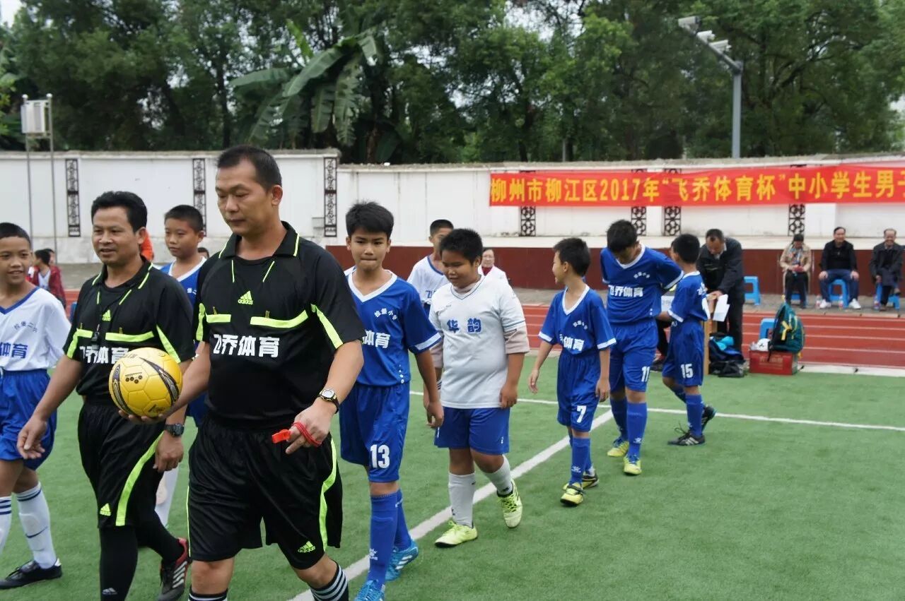 2017年10月17日上午,柳江區(qū)2017年"飛喬體育杯"中小學生男子足球賽捐贈服裝儀式在柳江區(qū)拉堡小學晨曦校區(qū)舉行。