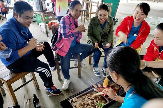 比賽結束后,小伙伴們開開心心的玩起燒烤。燒烤中,大伙兒開懷暢談。話題從比賽的趣事延伸到工作、生活、家庭,大家其樂融融,歡聲笑語縈繞著整個燒烤場。吃飽喝足,小伙伴們開始了自由活動,有的三兩成群打桌游,有的逛游美麗的生態園,有的摘果賞花、有的打起了乒乓球等。