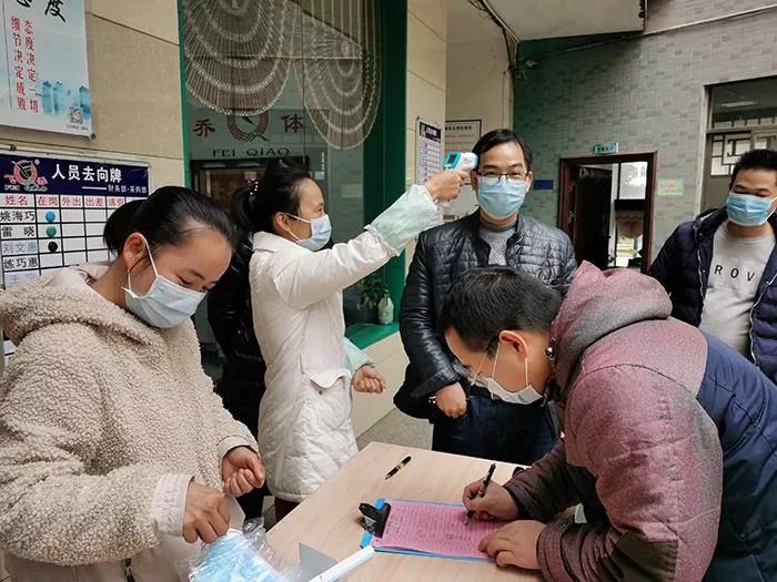 全體工作人員開工第一天檢測體溫,發放口罩,減少人員集聚,